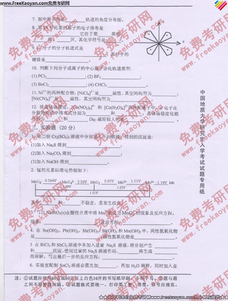 中国地质大学(武汉)2007年考研真题-大学化学(4)