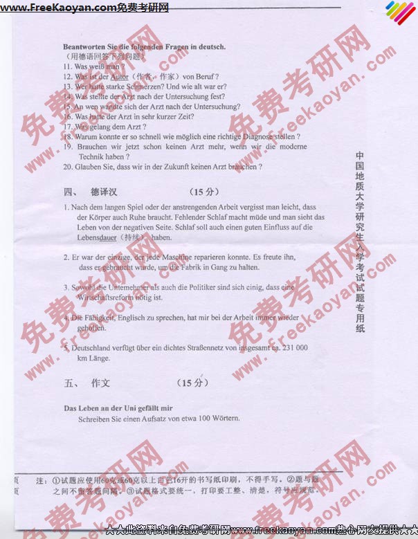 相关话题/中国地质大学 考研真题 德语