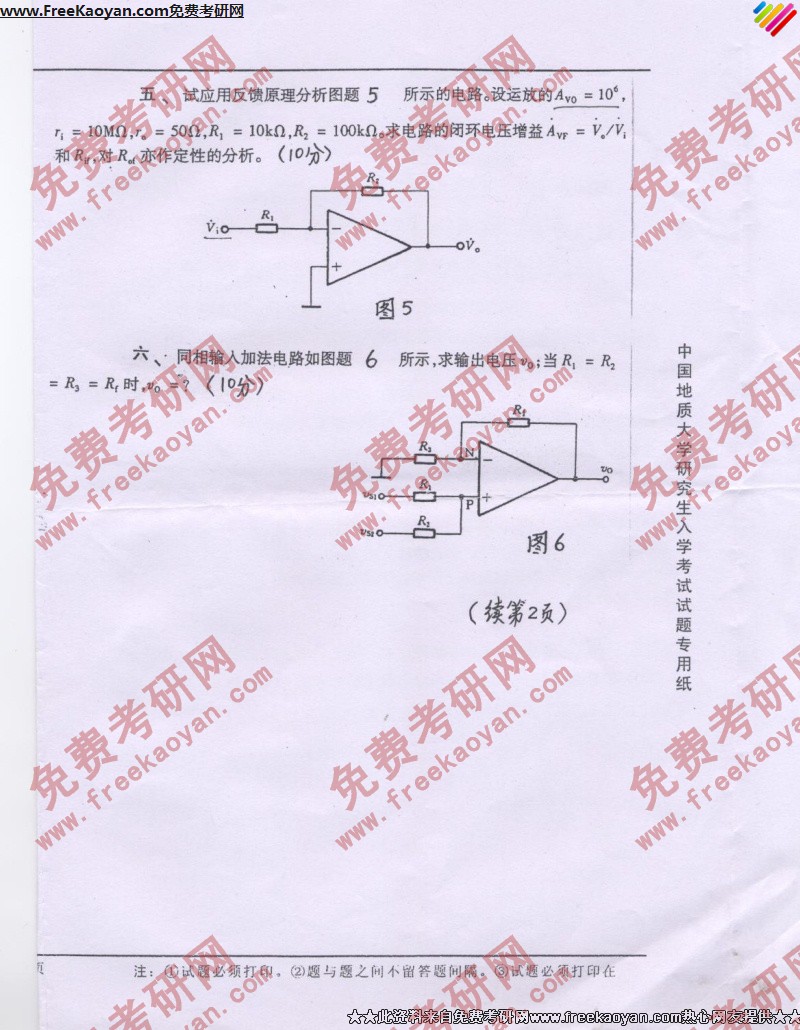 中国地质大学(武汉)2007年考研真题-电子技术基础(2)