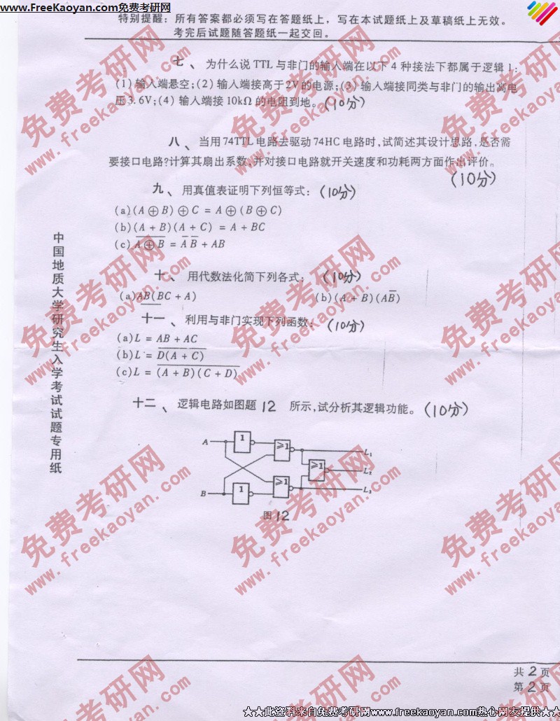 相关话题/中国地质大学 考研真题 电子技术基础