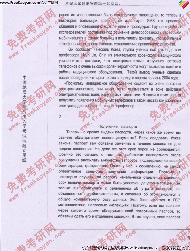 中国地质大学(武汉)2007年考研真题-俄语写译(3)