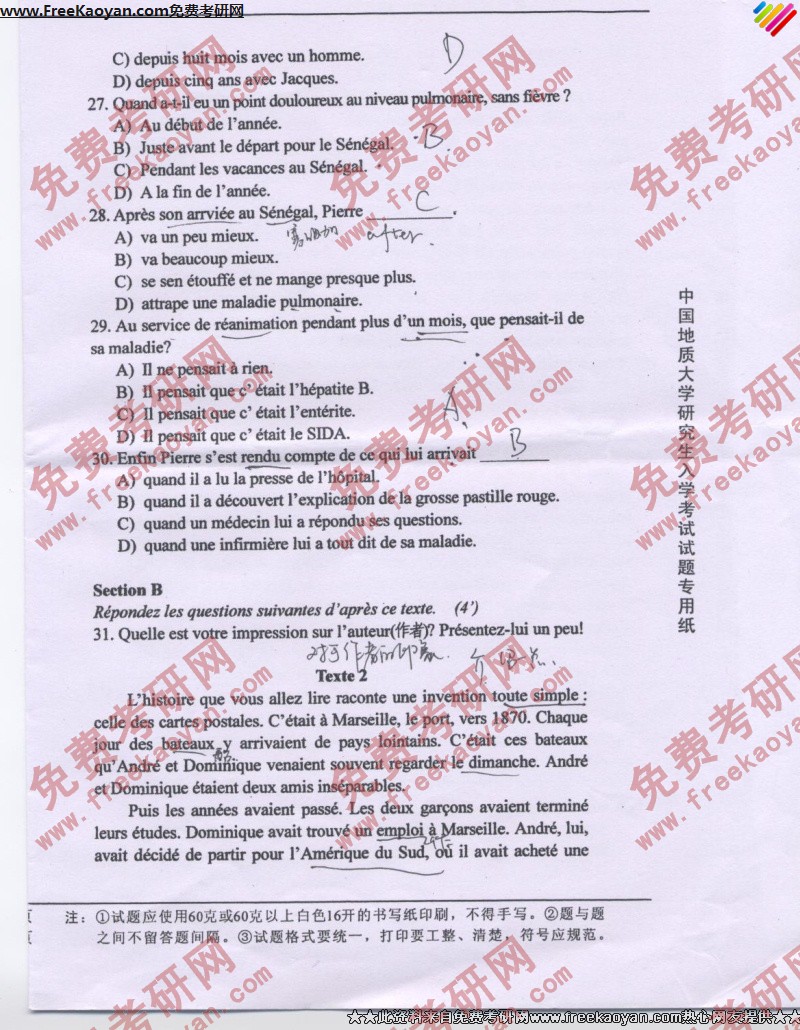 中国地质大学(武汉)2007年考研真题-法语(二外)(4)