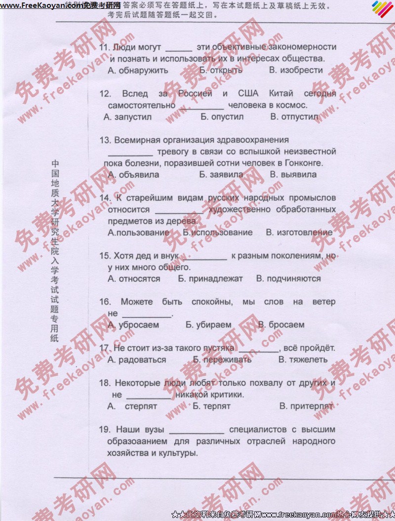 中国地质大学(武汉)2007年考研真题-俄语综合(3)