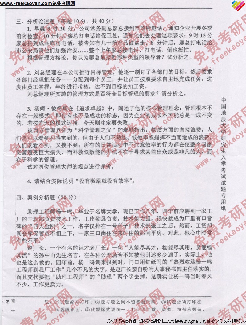 中国地质大学(武汉)2007年考研真题-管理学原理(2)
