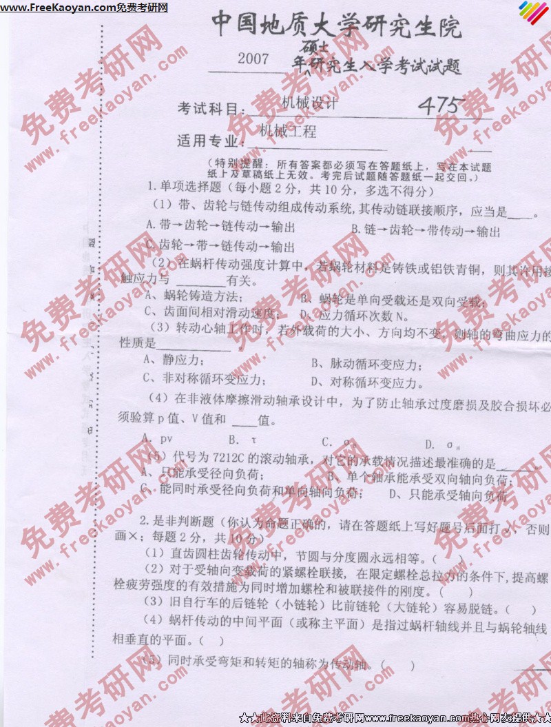 专业课考研经验 本站小编 FreeKaoyan 2018-01-23中国地质大学(武汉)2007年考研真题-环境地质学