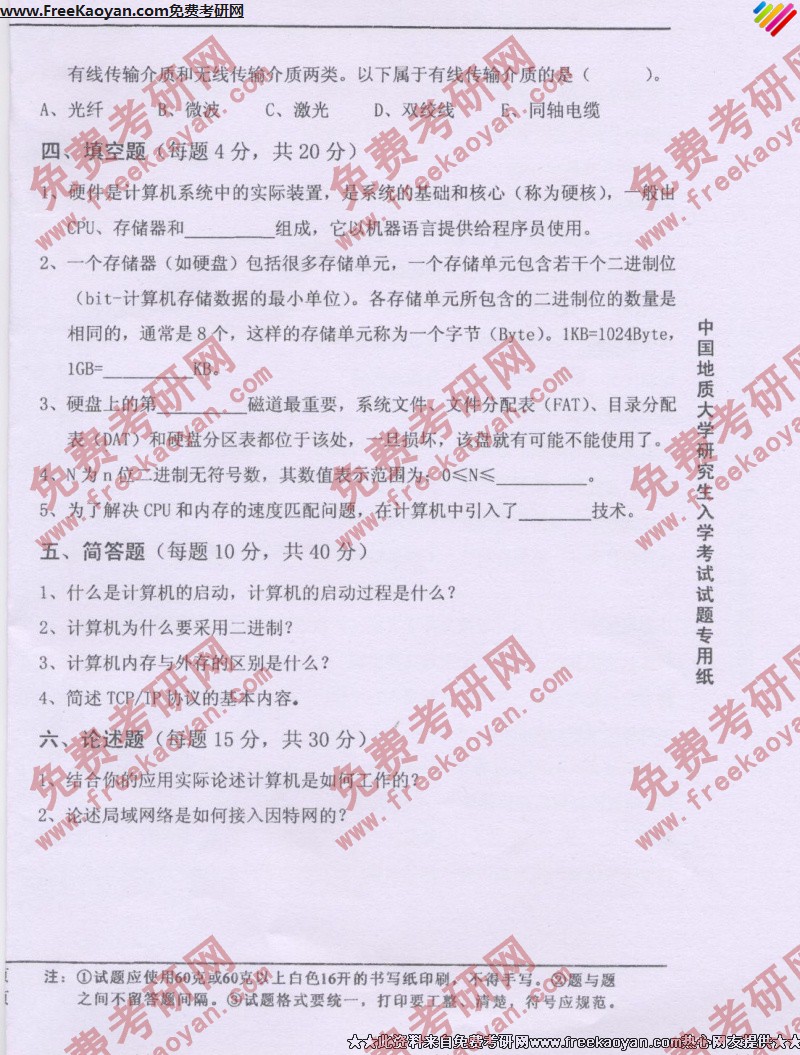 中国地质大学(武汉)2007年考研真题-计算机基础(4)