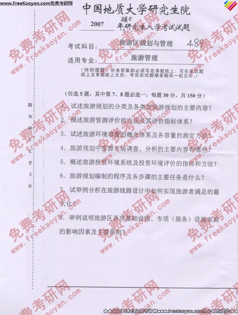 相关话题/中国地质大学 考研真题 管理 规划 旅游区