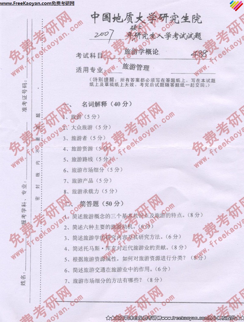 相关话题/考研真题 旅游学 中国地质大学 概论