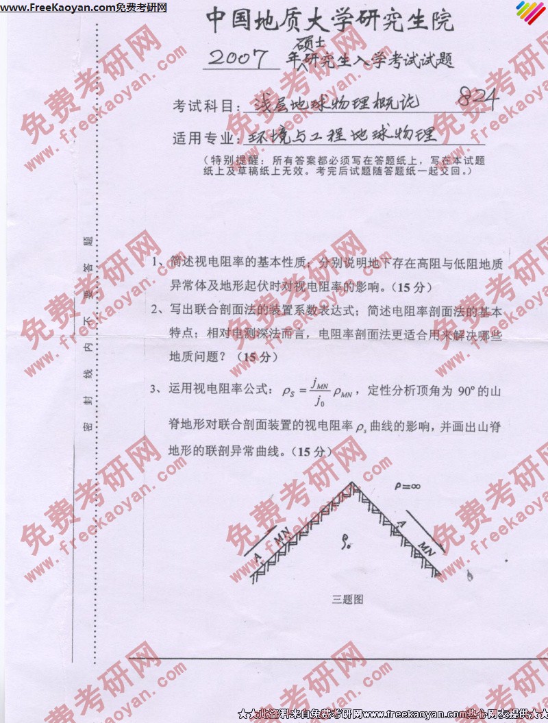 中国地质大学(武汉)2007年考研真题-浅层地球物理概论