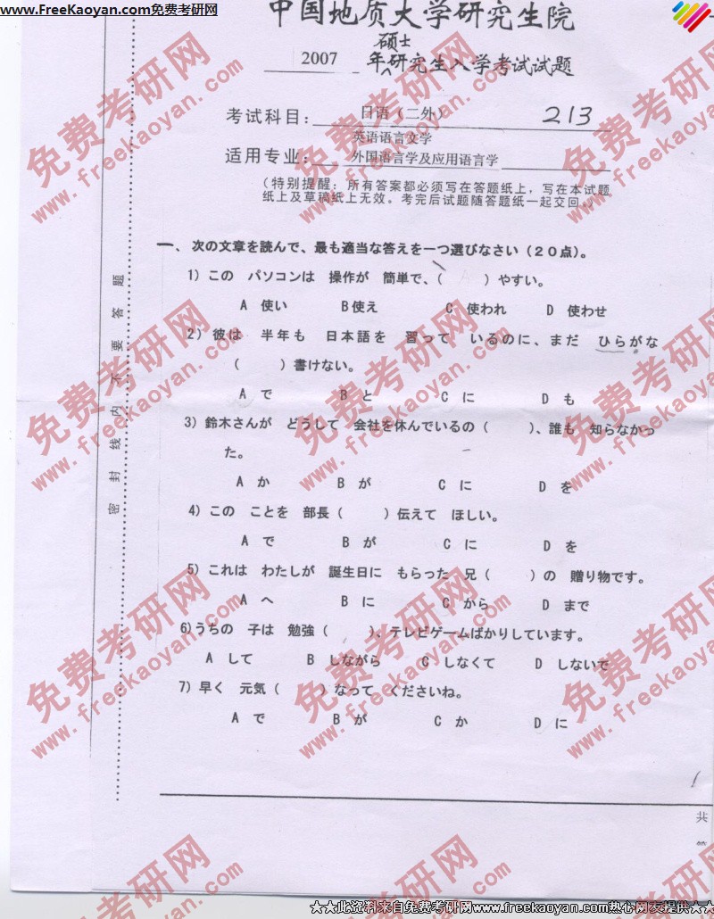 中国地质大学(武汉)2007年考研真题-日语(二外)