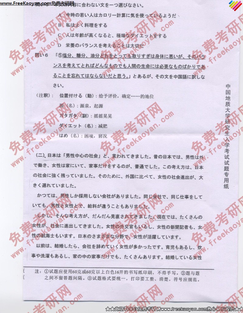 相关话题/中国地质大学 考研真题 日语