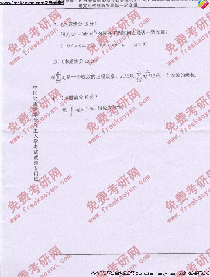 中国地质大学(武汉)2007年考研真题-数学分析(3)