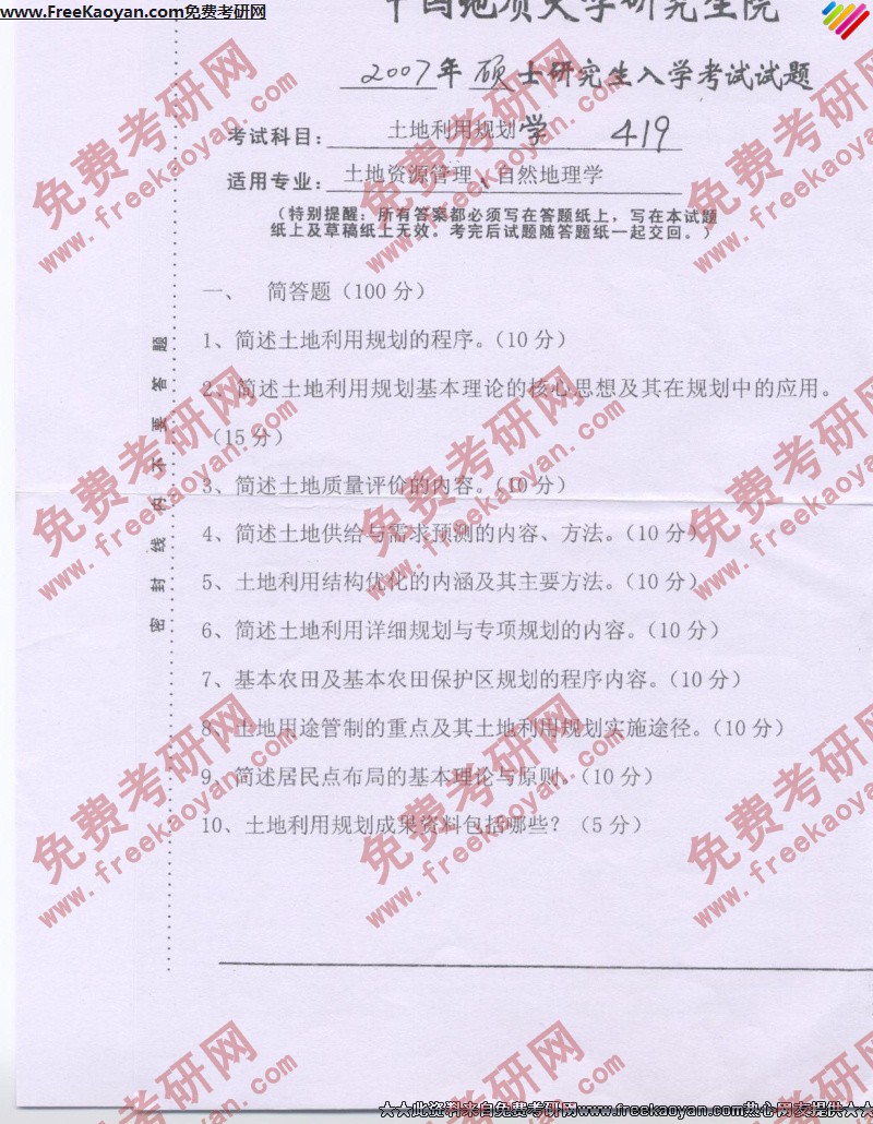 相关话题/考研真题 中国地质大学 规划 土地利用