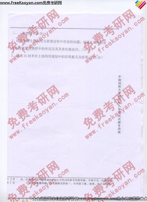 相关话题/考研真题 中国地质大学 规划 土地利用