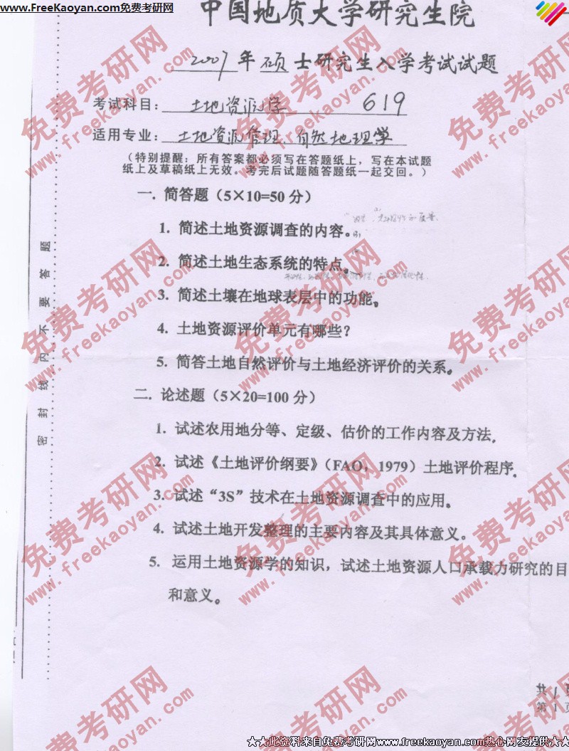 中国地质大学(武汉)2007年考研真题-土地资源学