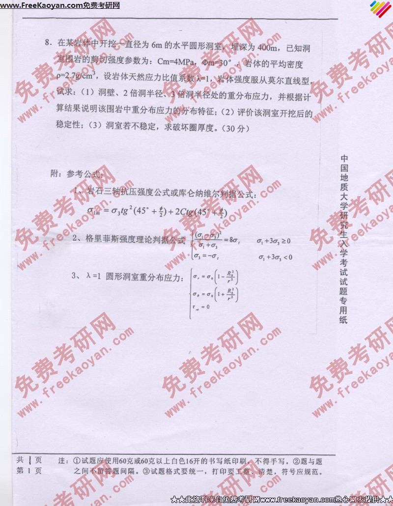 中国地质大学(武汉)2007年考研真题-岩体力学(2)