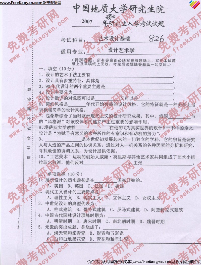 中国地质大学(武汉)2007年考研真题-艺术设计基础