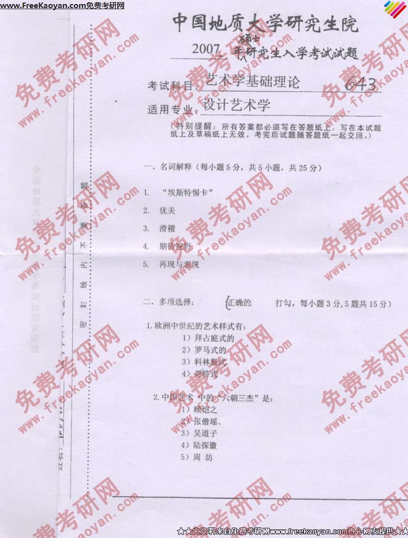 相关话题/考研真题 中国地质大学 艺术学 基础理论