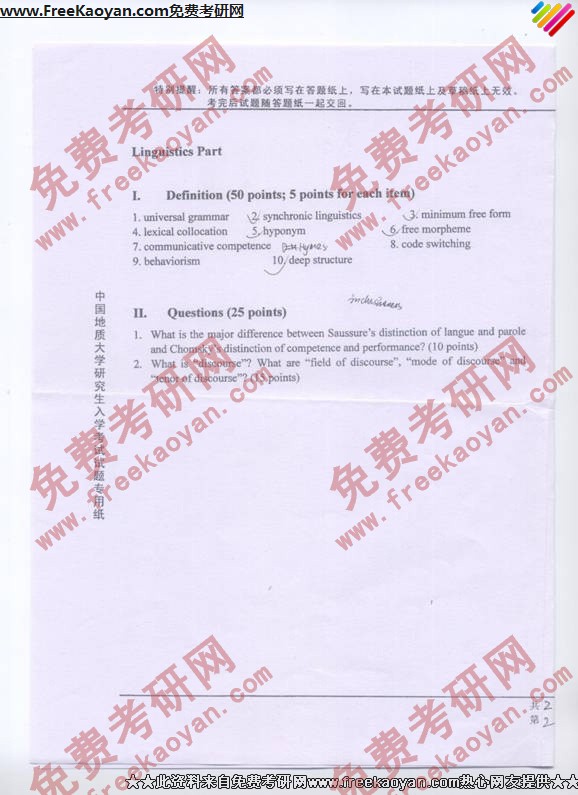相关话题/考研真题 中国地质大学 语言文学基础 英语