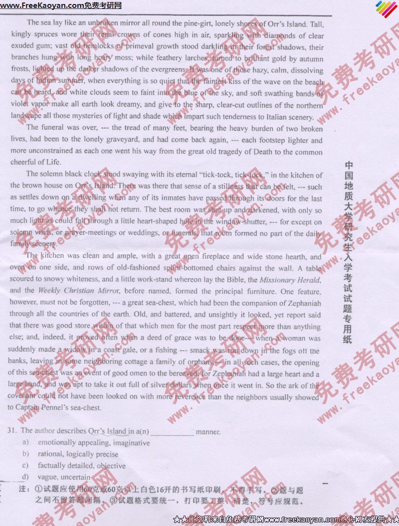专业课考研经验 本站小编 FreeKaoyan 2018-01-23中国地质大学(武汉)2007年考研真题-英语语言文学基础