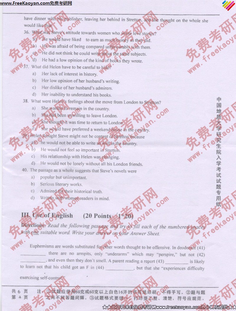 中国地质大学(武汉)2007年考研真题-综合英语(8)