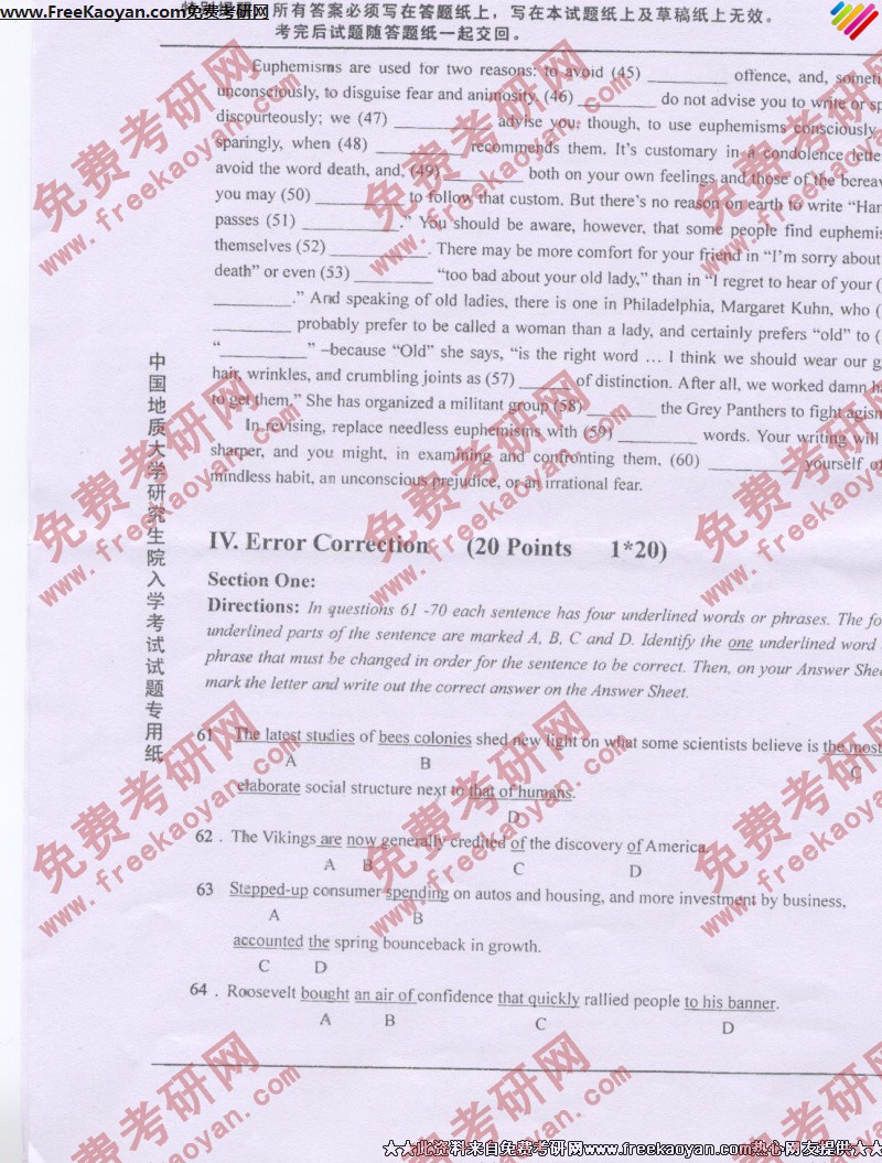 专业课考研经验 本站小编 FreeKaoyan 2018-01-23中国地质大学(武汉)2007年考研真题-英语语言文学基础