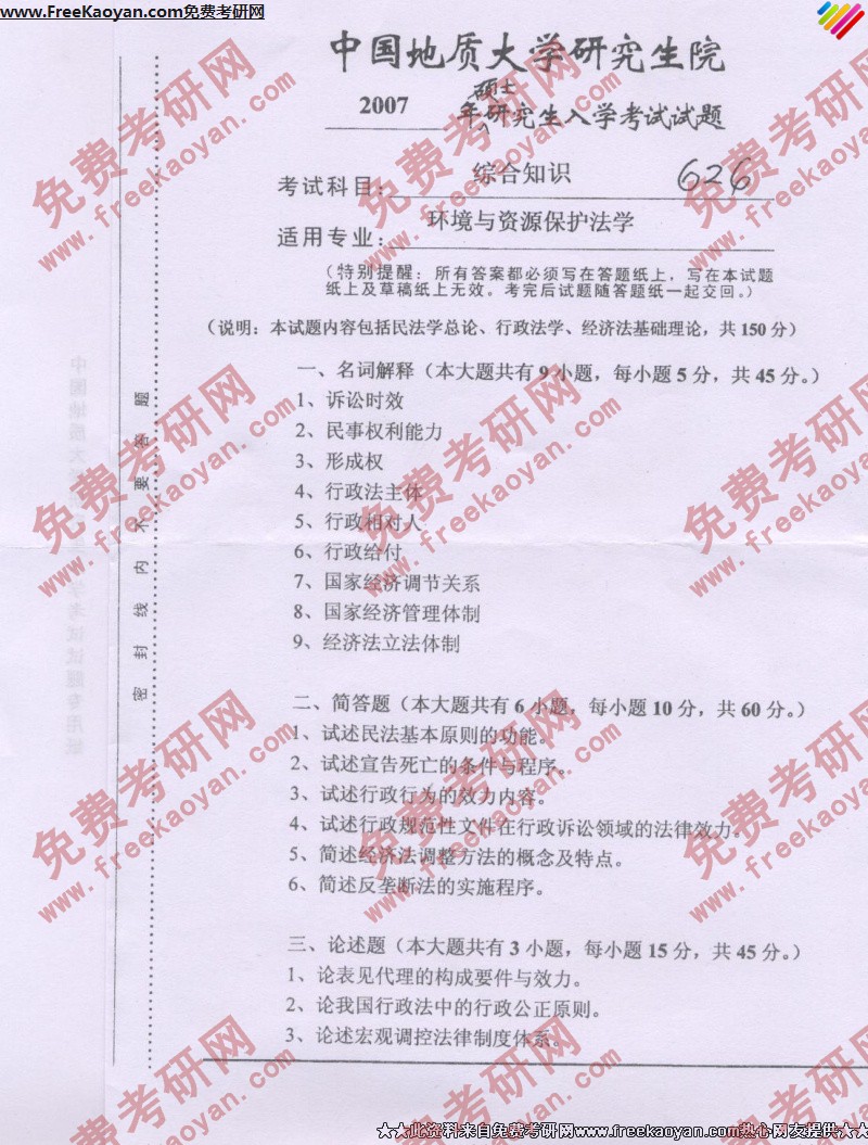 专业课考研经验 本站小编 FreeKaoyan 2018-01-23中国地质大学(武汉)2007年考研真题-专业综合