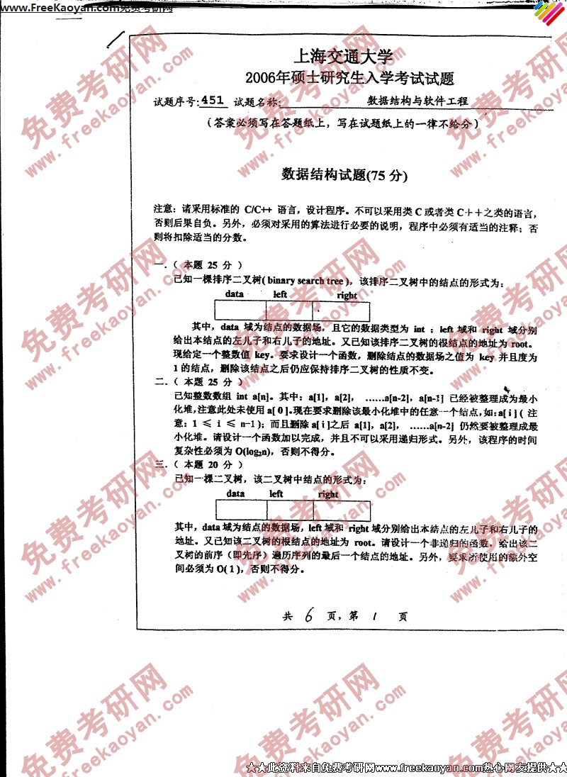 相关话题/考研真题 上海交通大学 软件工程 数据结构
