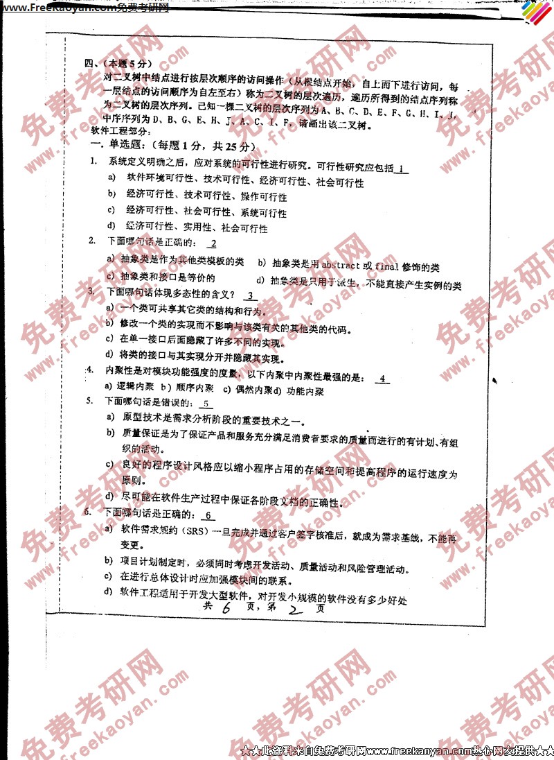 上海交通大学2006年考研真题-数据结构与软件工程(2)