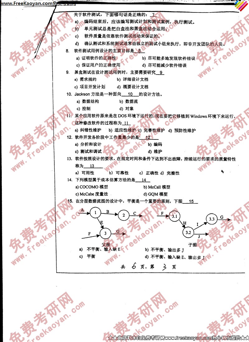 上海交通大学2006年考研真题-数据结构与软件工程(3)