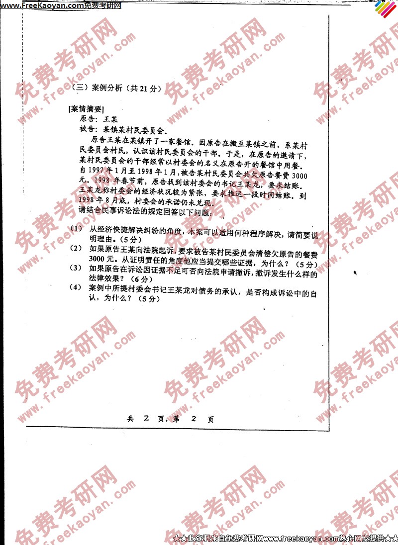 上海交通大学2006年考研真题-诉讼法学(2)