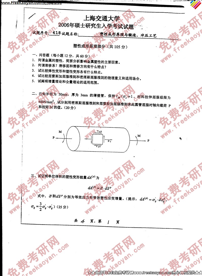 相关话题/考研真题 上海交通大学 塑性 工艺 原理