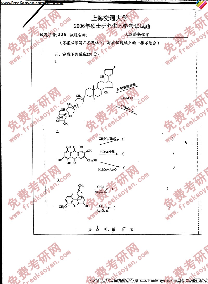 专业课考研经验 本站小编 FreeKaoyan 2018-01-23上海交通大学2006年考研真题-水污染控制工程