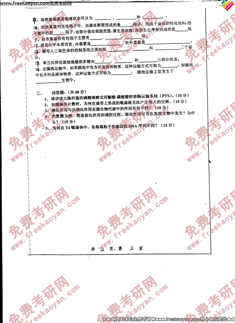 专业课考研经验 本站小编 FreeKaoyan 2018-01-23上海交通大学2006年考研真题-兽医微生物