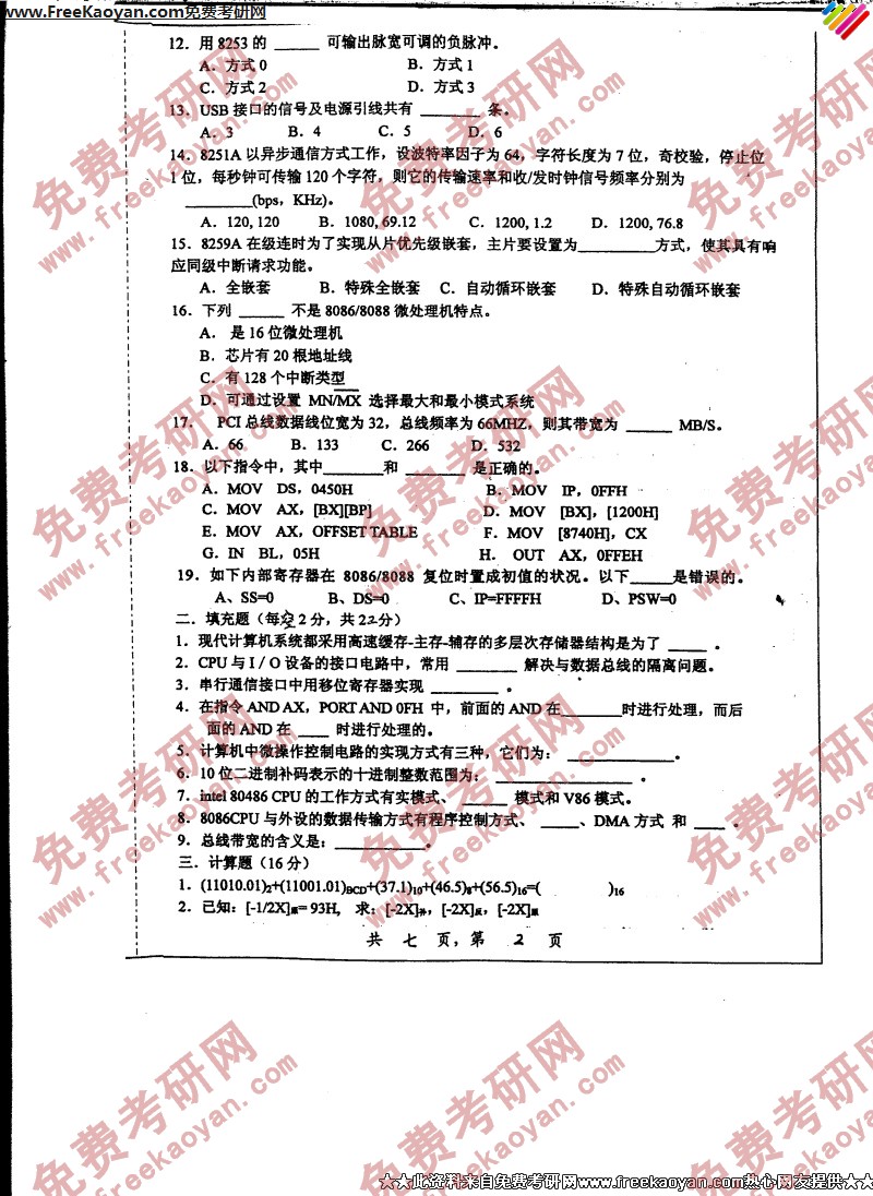 专业课考研经验 本站小编 FreeKaoyan 2018-01-23上海交通大学2006年考研真题-微机原理及其检测技术在仪器中的应用