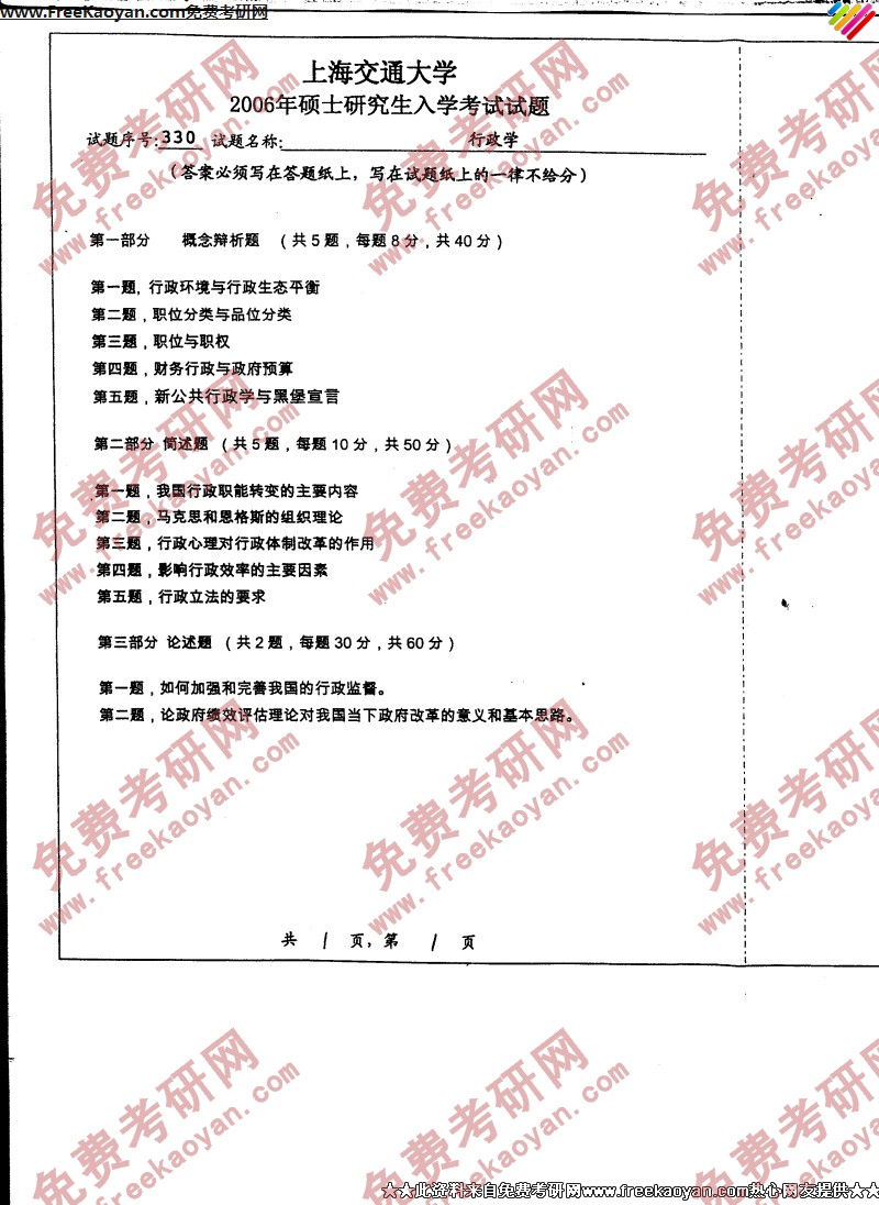 专业课考研经验 本站小编 FreeKaoyan 2018-01-23上海交通大学2006年考研真题-宪法与行政法学