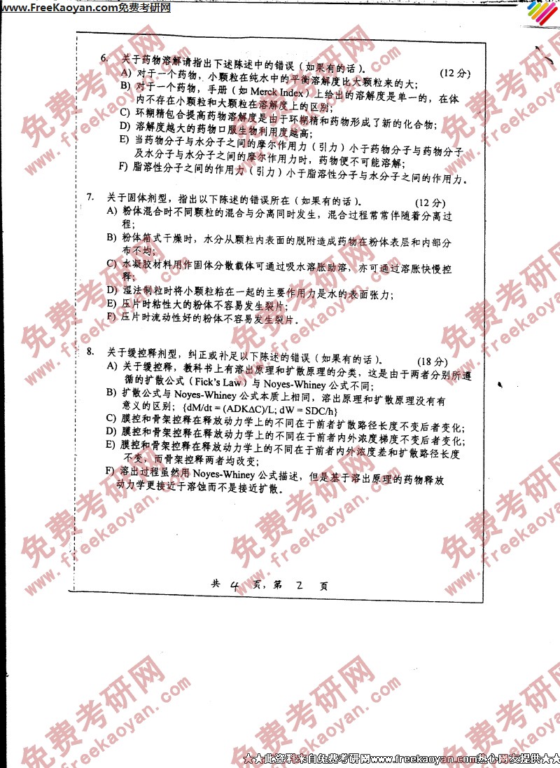 上海交通大学2006年考研真题-药剂学(2)