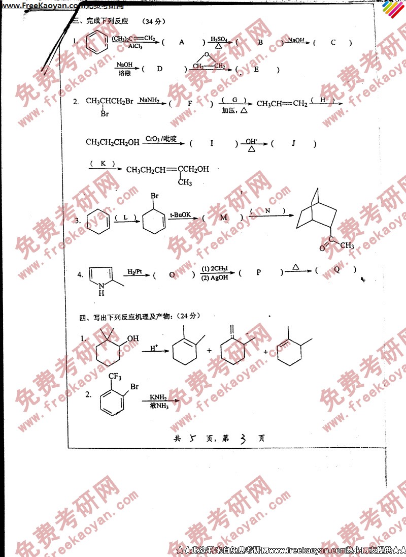 上海交通大学2006年考研真题-有机化学(I)(3)