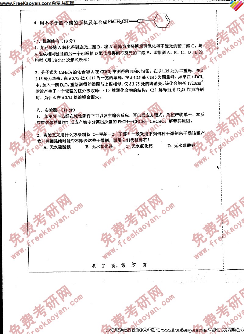 上海交通大学2006年考研真题-有机化学(I)(5)