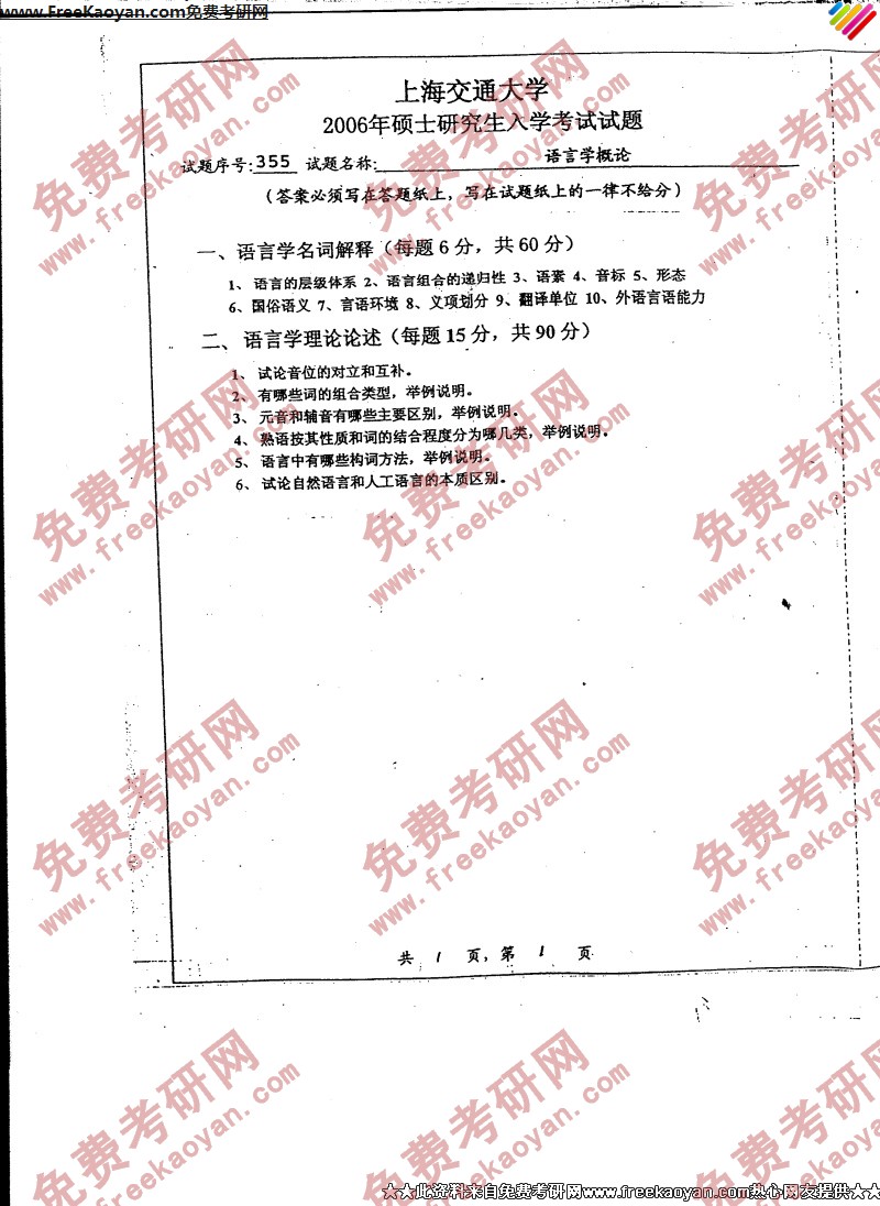 专业课考研经验 本站小编 FreeKaoyan 2018-01-23上海交通大学2006年考研真题-英语二外