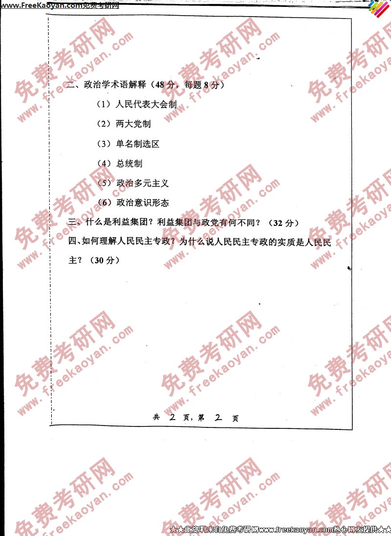 上海交通大学2006年考研真题-政治学(2)