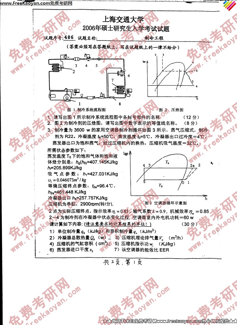 专业课考研经验 本站小编 FreeKaoyan 2018-01-23上海交通大学2006年考研真题-有机化学(I)