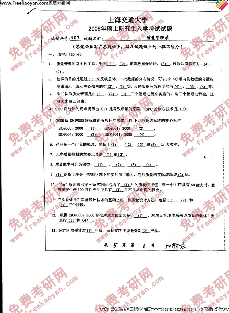 专业课考研经验 本站小编 FreeKaoyan 2018-01-23上海交通大学2006年考研真题-英语水平考试