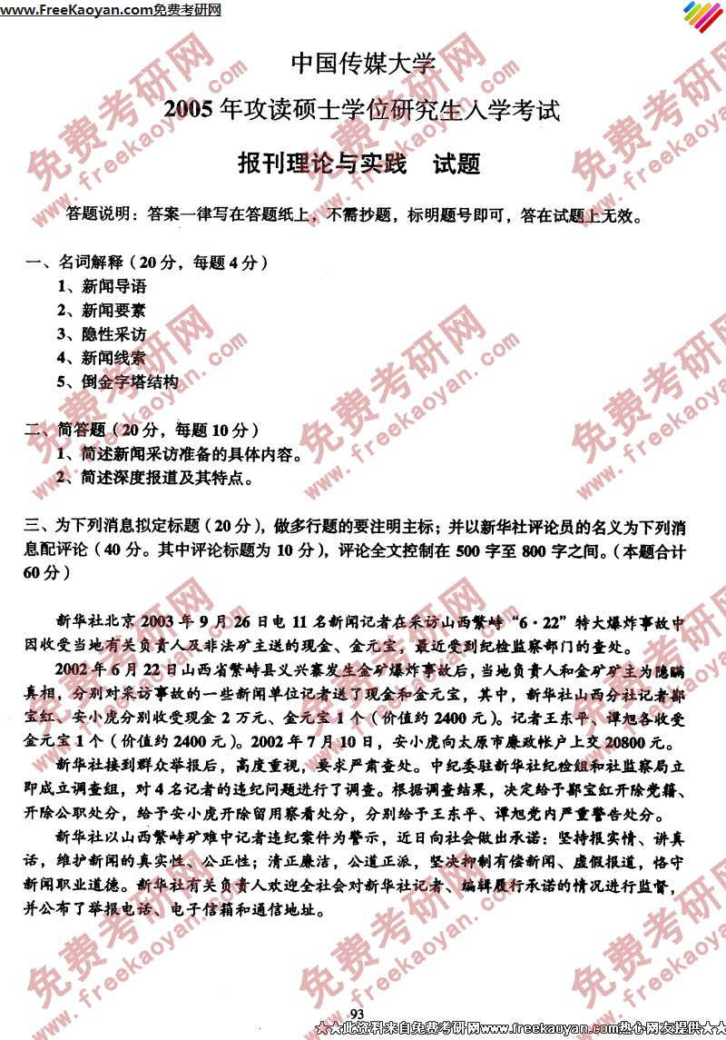 相关话题/考研真题 中国传媒大学 报刊 理论