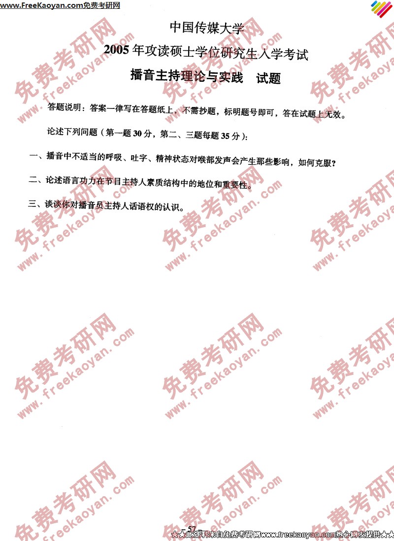 中国传媒大学2005年考研真题-播音主持理论与实践