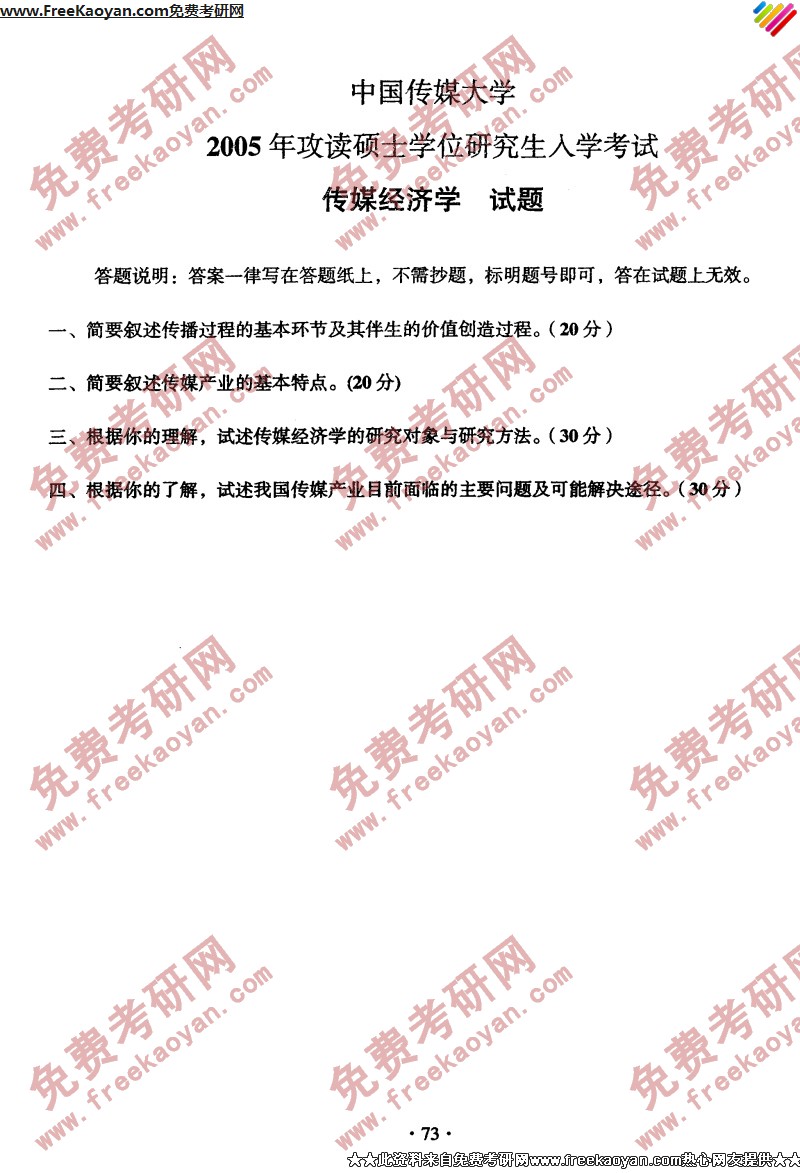 专业课考研经验 本站小编 FreeKaoyan 2018-01-23中国传媒大学2005年考研真题-报刊理论与实践