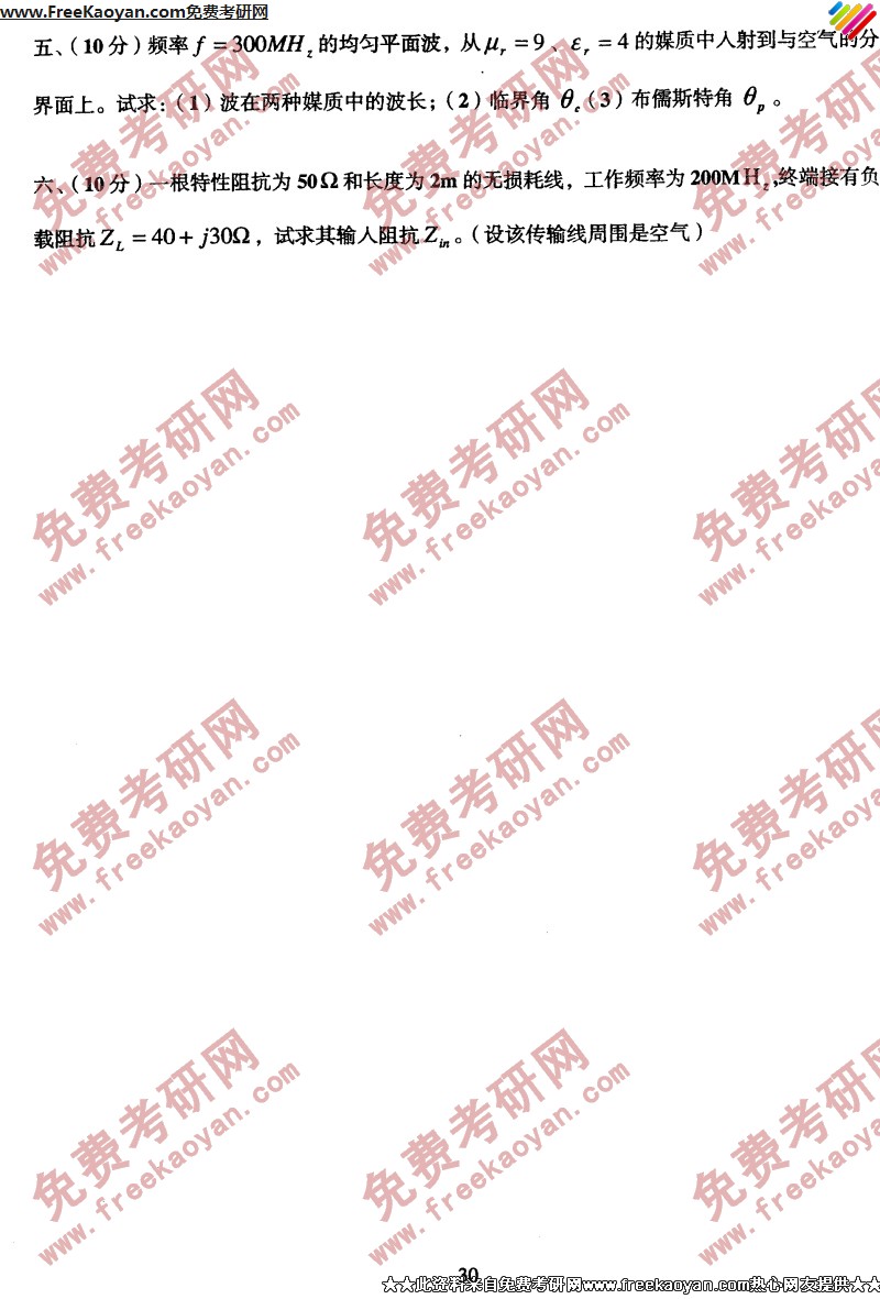 中国传媒大学2005年考研真题-电磁场与微波技术(2)