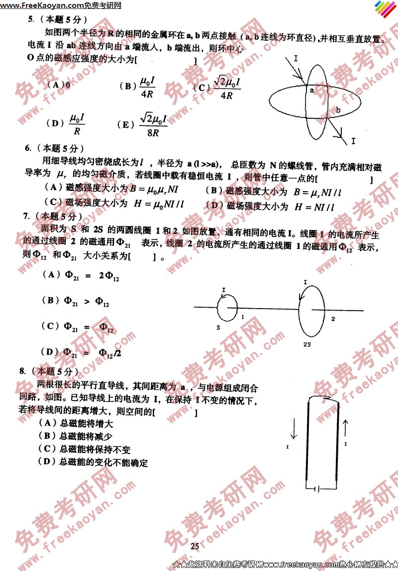 中国传媒大学2005年考研真题-电磁学(2)