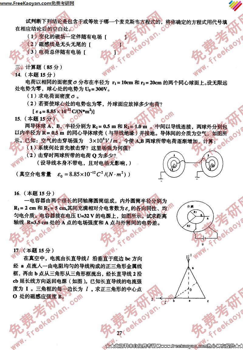 相关话题/中国传媒大学 考研真题 电磁学
