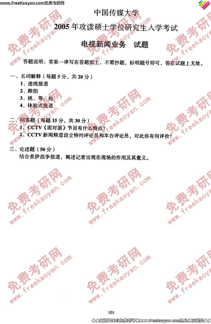 专业课考研经验 本站小编 FreeKaoyan 2018-01-23中国传媒大学2005年考研真题-报刊理论与实践